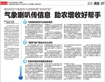 让县气象局工作人员感到高兴的是,在“两系统一平台”的构架上,隆安结合当地特色建立的隆安县综合气象服务系统,今年6月正式投入业务使用以来得到区气象局的肯定,并确立为“隆安模式”,提出争取用3年时间,在全区各市县完成“隆安模式”县级综合气象服务系统建设和推广工作。“这是服务思维的改变,由原先只是将气象服务推出去,转变成把各类需求请进来,将使服务更加有效而直接,这才是‘隆安模式’的精髓。”